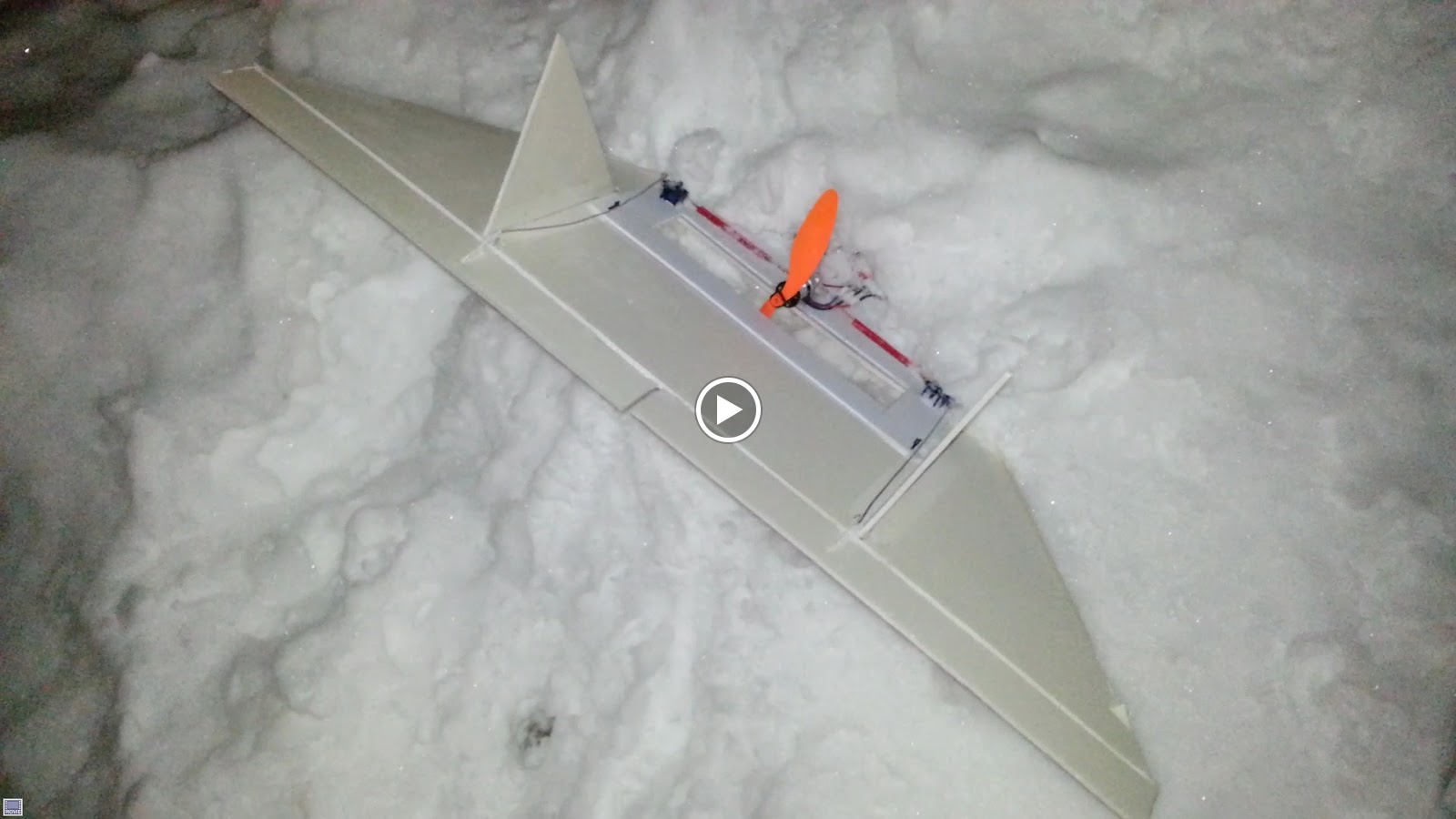 An experiment with big z-bends in the control surfaces. This make the plane floppy and very hard to control; the control surfaces had no authority. We tried this out because we did not have proper control rods and/or linkage stoppers. |